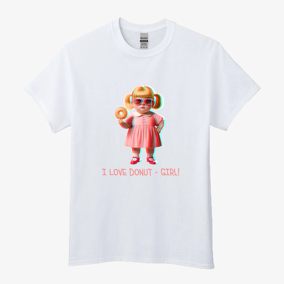 AIでデザインされた画像を元に、レタッチ・加工してつくられたドーナツガールのTシャツです。